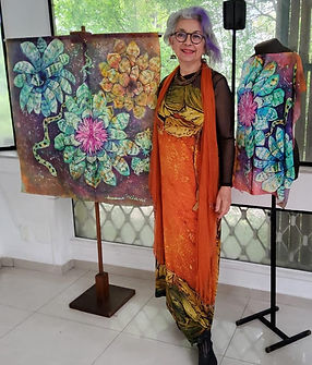 Suas experiências em Batik, começaram ainda na Argentina através do artista plástico Ismael Rodrigues. No Brasil, frequentou o atelier do Artista plástico Aldemir Martins.